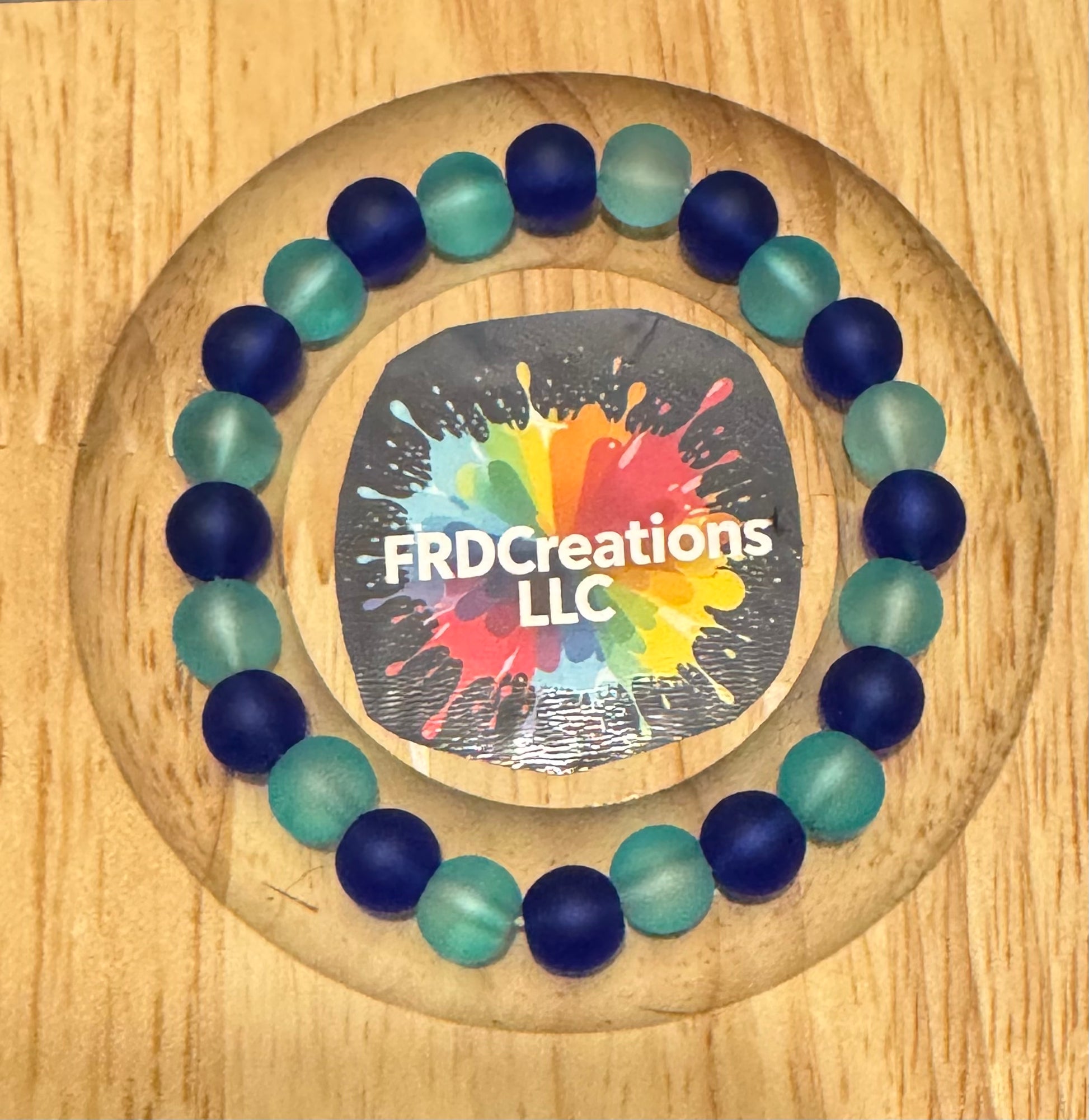Handmade Blue and Aqua Matte Sea Glass Elastic Bracelet