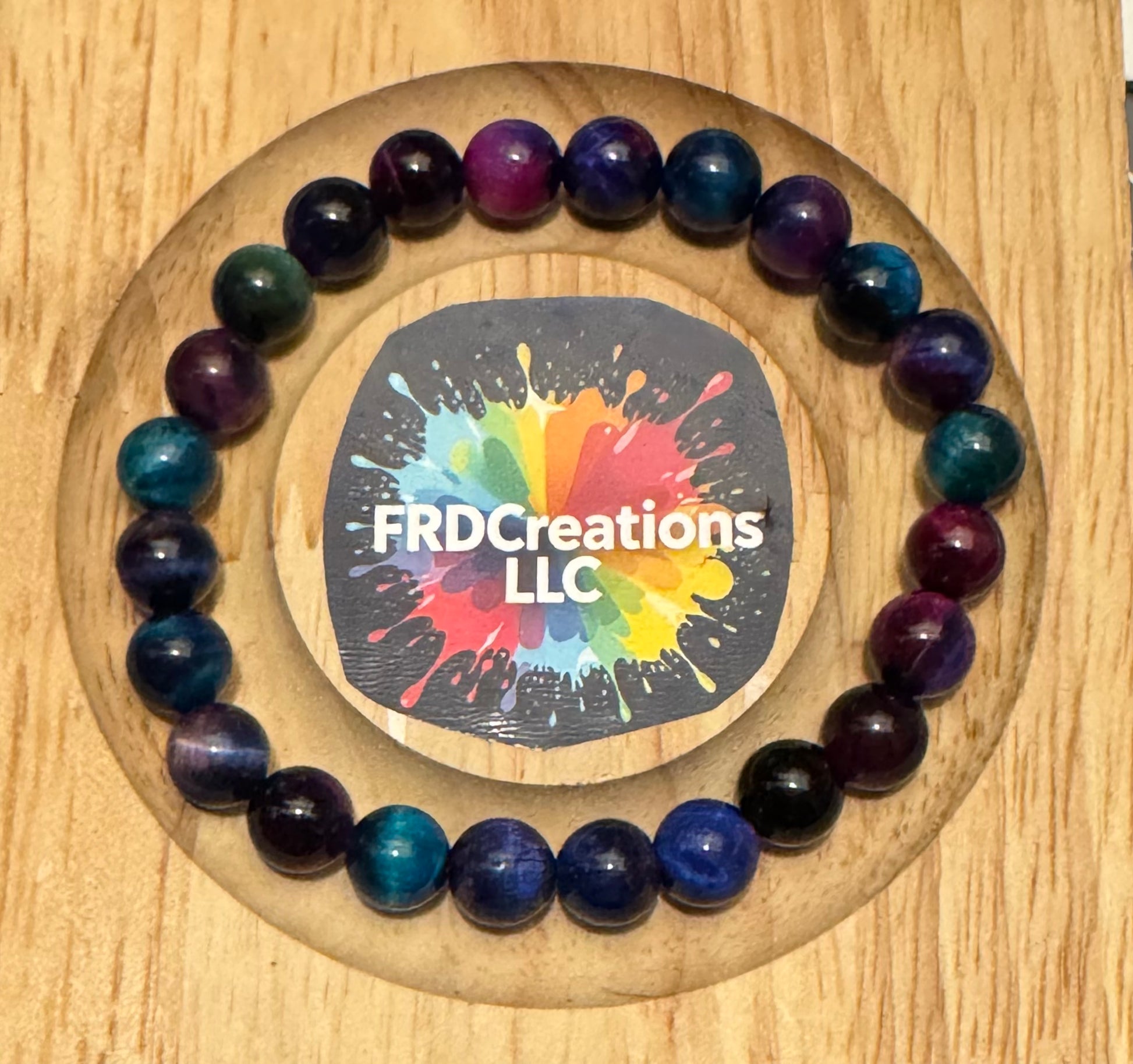 Rainbow tigers eye beads on Elastic. Fits up to size 7 wrist.