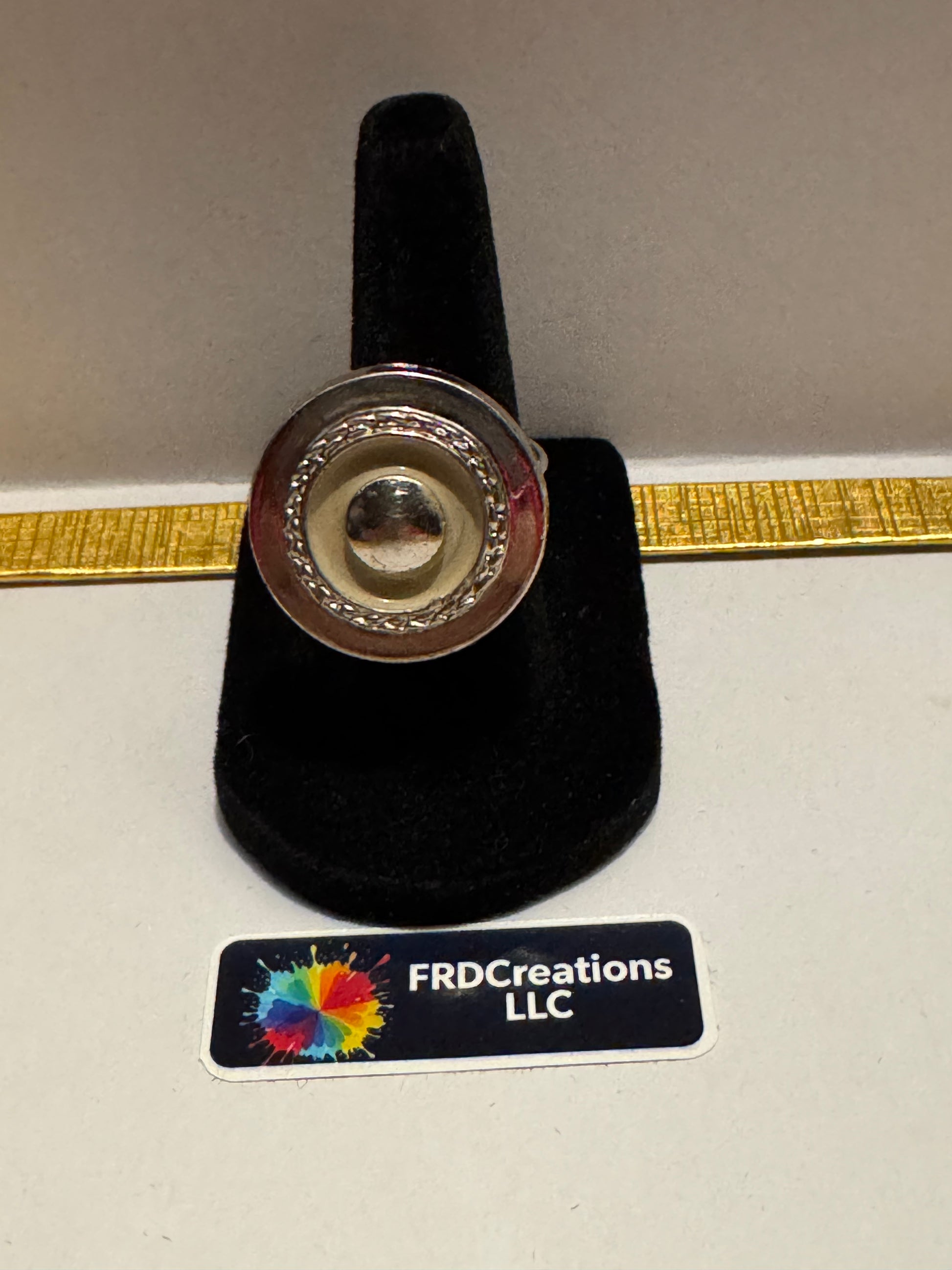 A vintage plastic button wire wrapped with aluminum wire. Size 7 ring size